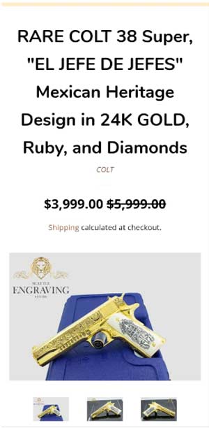 Seguro hay ejemplos legítimos del elemento de publicidad irresponsable a la que aluden. El indicado aquí (mal llamado revolver) no lo es porque usan un anuncio de una empresa que no es fabricante de armas (se dedica a grabarlas).